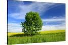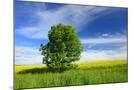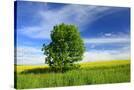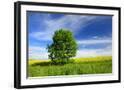 Tree on the Edge of a Rape Field in the Spring, Saalekreis, Saxony-Anhalt, Germany Photo Print