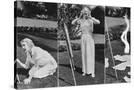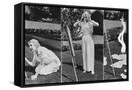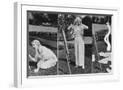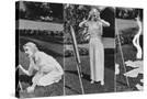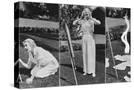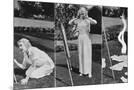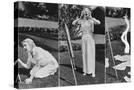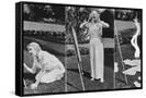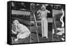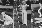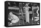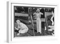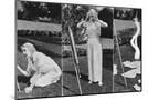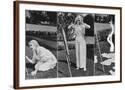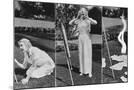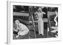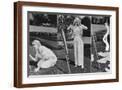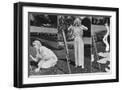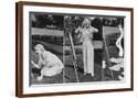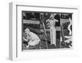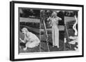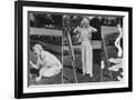 Triptych of Woman Lighting Rocket and Exploding Photo Print