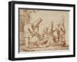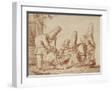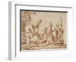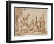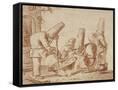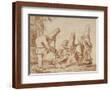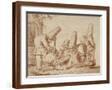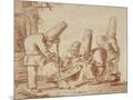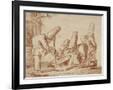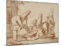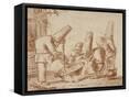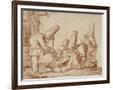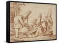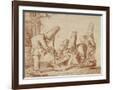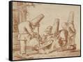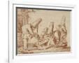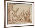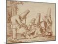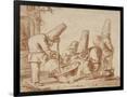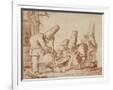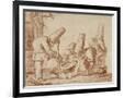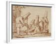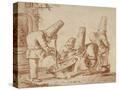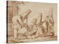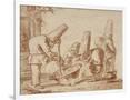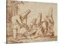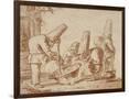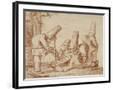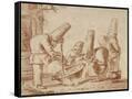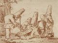 Trois polichinelles autour d'une marmite, un quatrième tournant le dos