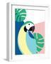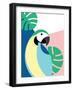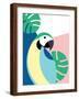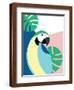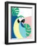 Tropical Bird in Abstract Geometric Style: Blue Macaw Parrot Wall Art Print