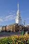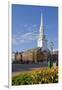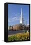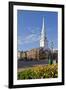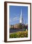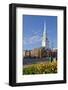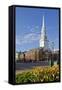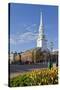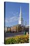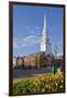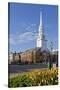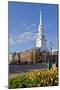 Tulips and North Church in Market Square. Portsmouth, New Hampshire