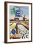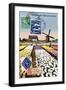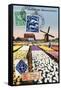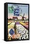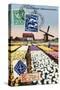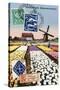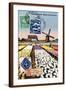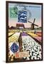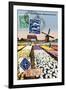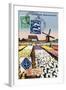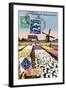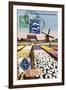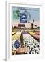 Tulips and Windmills, Dutch Vintage Postcard Collage Wall Art Print