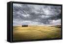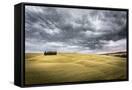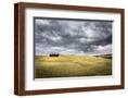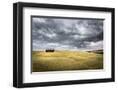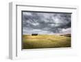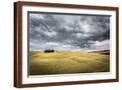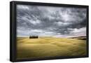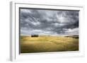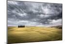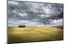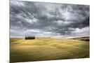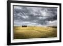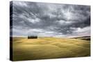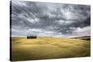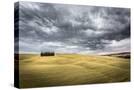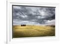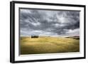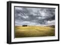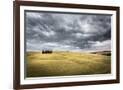 Tuscany, Val D'Orcia, Italy. Cypress Trees in a Yellow Meadow Field with Clouds Gathering Photo Print