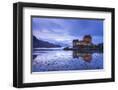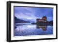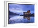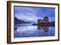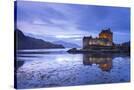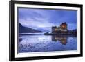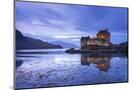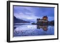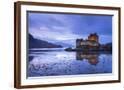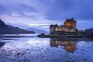 Twilight over Eilean Donan Castle on Loch Duich, Dornie, Scotland. Winter (November)