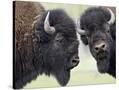 Two Bison Bulls Facing Off, Yellowstone National Park, Wyoming, USA