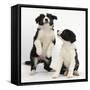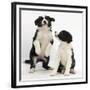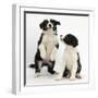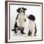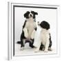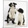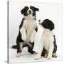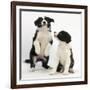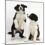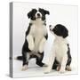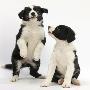 Two Black-And-White Border Collie Puppies Playing, 6 Weeks