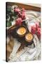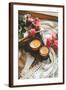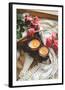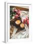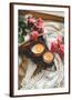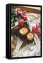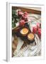 Two Burning Candles, Roses and a Book, Aesthetics Photo Print