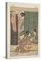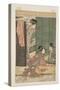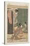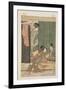 Two Courtesans and a Young Man under a Mosquito Net (Colour Woodblock Print) Giclee Wall Art