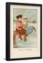 Two Dutch Children Sit on a Pier and Fish as Ships Sail in the Distance Wall Art Print