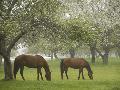 Two Horses Eating in Spring Pasture, Cape Elizabeth, Maine