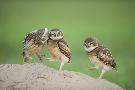 Two Newly Fledged Burrowing Owl Chicks (Athene Cunicularia), Pantanal, Brazil