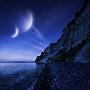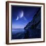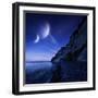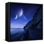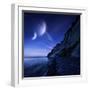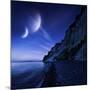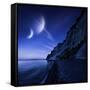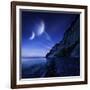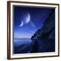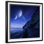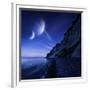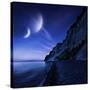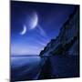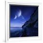 Two Planets Hover over a Tranquil Sea and Mons Klint Cliffs, Denmark Photo Print