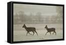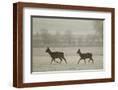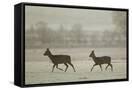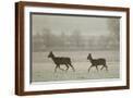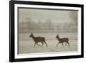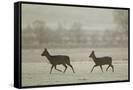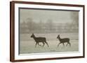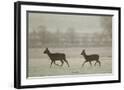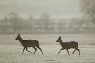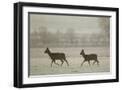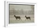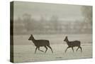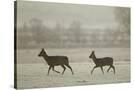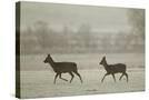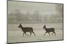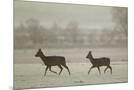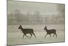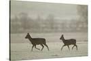 Two Roe Deer (Capreolus Capreolus) Walking across a Frosty Field, Scotland, UK, November 2011