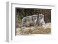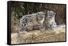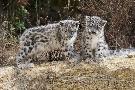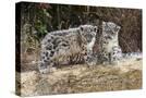 Two, three month Snow leopard cubs siting, France. Captive Photo Print