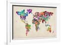 Typographic Text World Map Wall Art Print