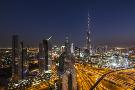 UAE, Downtown Dubai. Cityscape with Burj Khalifa at night.