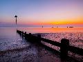 UK, England, Essex, Thames Estuary, Southend, Shoeburyness at Sunset