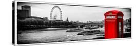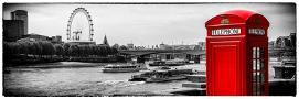 UK Landscape - Red Telephone Booth and River Thames - London - UK - England - United Kingdom