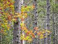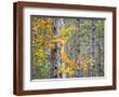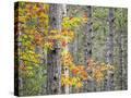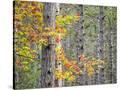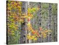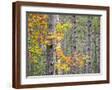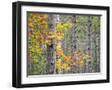 US, Michigan, Upper Peninsula. Fall foliage and pine trees in the forest. Photo Print
