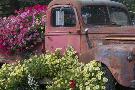 USA, Alaska, Chena Hot Springs. Old truck and flowers.