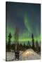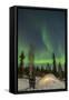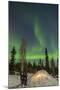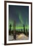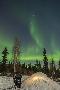 USA, Alaska, Fairbanks. a Quinzee Snow Shelter and Aurora Borealis