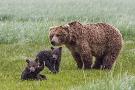 USA, Alaska, Katmai National Park, Hallo Bay. Coastal Brown Bear with twins