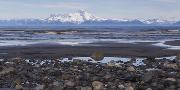 USA, Alaska, Kenai Peninsula. Seascape with Mount Redoubt and beach.