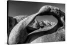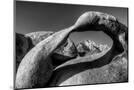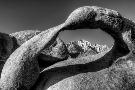 USA, California, Alabama Hills. Black and white of Mobius Arch at sunrise.