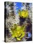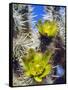 USA, California, Joshua Tree Silver Cholla Cactus Wildflowers