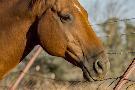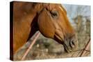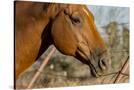 USA, California, Parkfield, V6 Ranch horse head of a brown horse