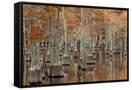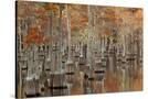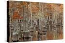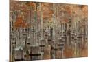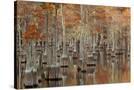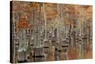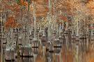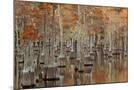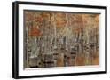 USA, Georgia. Twin City, Cypress trees with moss in the fall.