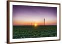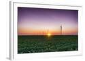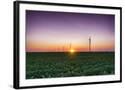 USA, Indiana. Soybean Field and Wind Farm at Sundown Photo Print
