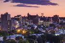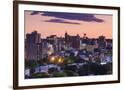 USA, Maine, Portland, skyline from Munjoy Hill at dusk