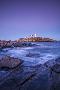USA, Maine, York, Nubble Light Lighthouse, dusk