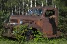 USA, Minnesota, Sandstone, Bear Cub and Old Truck