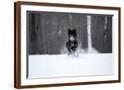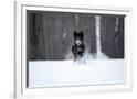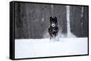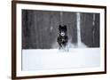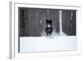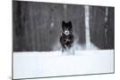 USA, Minnesota, Sandstone. Black wolf running through the snow