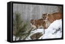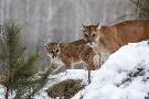 USA, Minnesota, Sandstone. Mother and baby cougar
