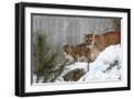 USA, Minnesota, Sandstone. Mother and baby cougar