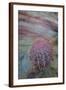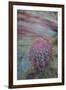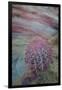 USA, Nevada, Overton, Valley of Fire State Park. Multi-colored rock formation and cactus. Photo Print