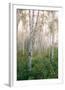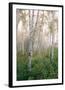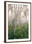 USA, New Hampshire. Birch Trees in Clearing Fog