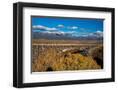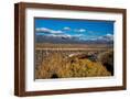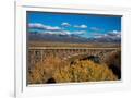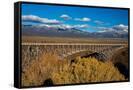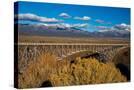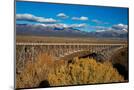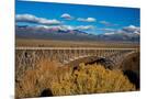 USA, New Mexico, Rio Grande del Norte NM. Rio Grande Gorge Bridge and snow-covered peaks.
