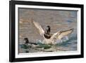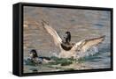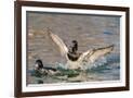 USA, New Mexico, Socorro County. Ring-necked duck landing in water.