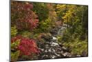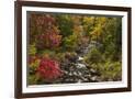 USA, New York, Adirondack State Park. Stream and forest in autumn.