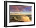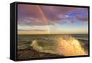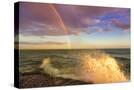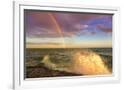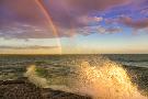 USA, New York, Lake Ontario, Clark's Point. Double rainbow over lake.