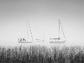 USA, New York State. Three sailboats, St. Lawrence River, Thousand Islands.