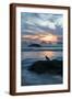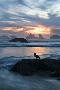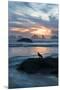 USA, Oregon, Bandon Beach. Seagull on Rock at Twilight