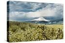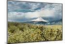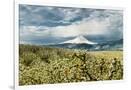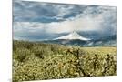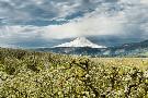 USA, Oregon, Hood River. Mt. Hood Looms over Apple Orchard