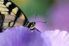 USA, Pennsylvania. Tiger Swallowtail Butterfly on Petunia Flower