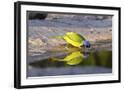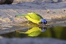 USA, Texas, Rachal, Tacubaya, Green Jay Drinking Water, Reflection