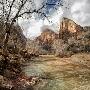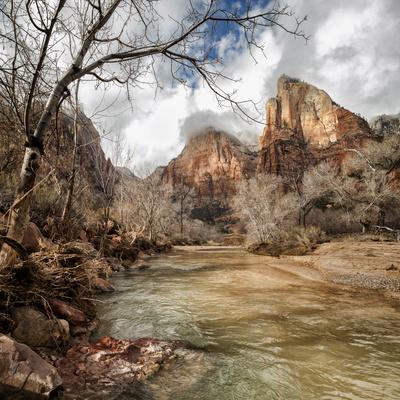 USA, Utah, Zion National Park. Virgin River and Cottonwoods in winter